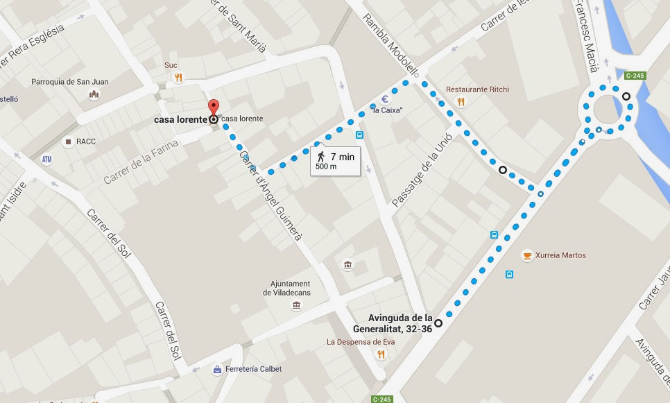 1.- Desde Avinguda de la Generalitat, subir por Rambla Modolell. 2.- Girar a mano izquierda por Carrer de les Sitges. 3.- ¡AVISO! En la esquina de Carrer de les Sitges con Carrer Sant Climent, nos encontramos una señal de contradirección. Si observamos atentamente, veremos un cartel que indica que se puede acceder para vados o carga y descarga, así que continuamos recto. 4.- Girar a mano derecha por Carrer d'Àngel Guimerà. ¡ATENCIÓN! Google Maps y Navegadores nos indican que hay que acceder por Carrer Sant Marià. En el último tramo de esta calle, está prohibida la circulación. Una cámara de seguridad está grabando permanentemente, por lo cual la infracción queda grabada. ¡NO ACCEDER POR CARRER SANT MARIÀ! |